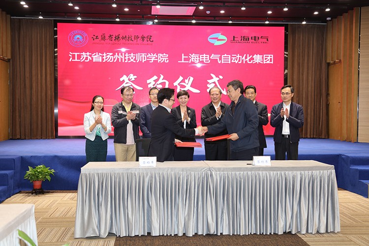 10月22日下午,我院与上海电气自动化集团关于“上海电气产教科融合发展扬州基地”项目合作签约仪式在扬州生态科技新城软件园多功能厅举行。扬州市人民政府副市长方桂林,上海电气自动化集团党委书记郭润平,副总裁王庆东,上海电气自动化设计研究所有限公司总经理陈烨,学院党委书记徐祥华、院长都国雄,扬州生态科技新城管委会主任李林等参加了签约仪式。