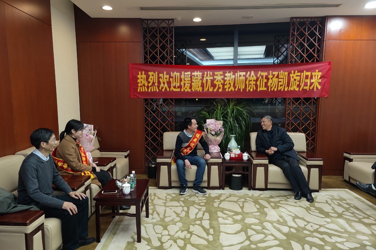 仪式中,学院领导与徐征杨老师进行了简短的座谈,会谈中徐征杨老师汇报了援藏的收获。学院领导有感于援藏条件之苦、工作之实,徐老师无论是担任领导岗位的援藏干部,还是普通的教育工作者,无不扎实工作、甘于奉献,他良好的精神面貌和工作作风是“延安精神”和“老西藏精神”的充分体现;有感于汉藏师生情谊之深、信任之重,无论在教室,还是测量实习现场,让我们看到的是藏族同胞的质朴、真诚,是汉藏两族人民情义交融、团结共荣的和谐场景。院领导希望徐老师在回扬后能休息好,把援藏精神带到今后的工作上,同时也希望学院全体教职工以徐征杨老师为榜样,传承无私奉献的教育精神,为教育事业发展接续奋斗!