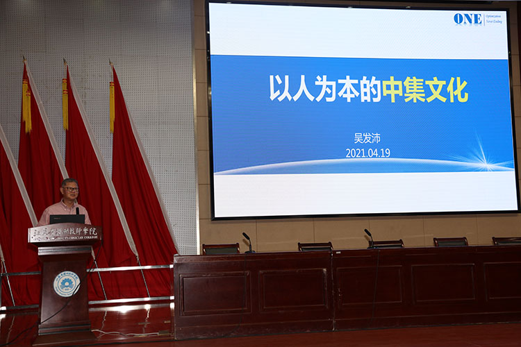 揭牌仪式后,中集集团高级顾问、校企合作领导小组组长吴发沛以“以人为本的中集文化”为主题开启了精彩的开班第一课。从为什么需要精益文化建设,为什么选择丰田生产方式构建卓越文化以及中集的ONE文化等三个方面全面系统地为全体中集定制专班学生讲授了中集集团的企业文化和企业精神,让同学们感受到中集集团的企业文化资源优势和行业地位,坚定了成为中集未来智能制造的核心骨干力量的决心。