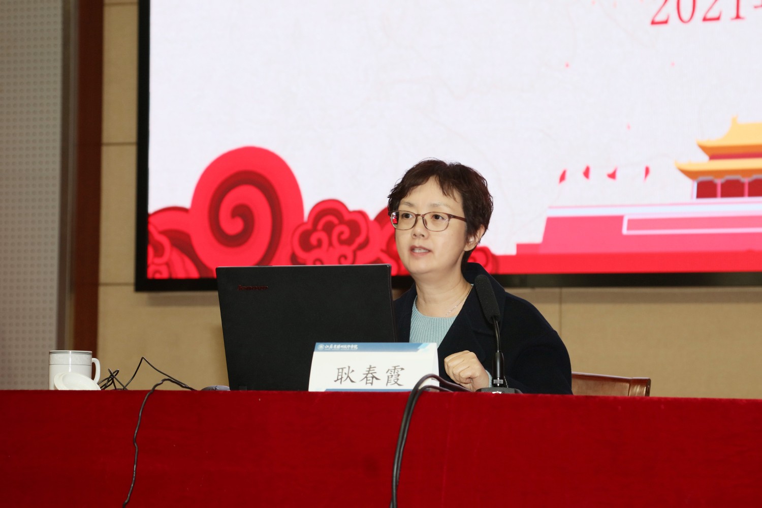 为扎实开展党史学习教育,11月25日,学院院长耿春霞为全院师生讲授了题为《中国共产党精神的江苏篇章》专题党课。学院全体在扬院领导、学院副科级以上干部、党员教师在报告厅参加了党课报告会。党课报告会由党委副书记、纪委书记刘建伟主持。