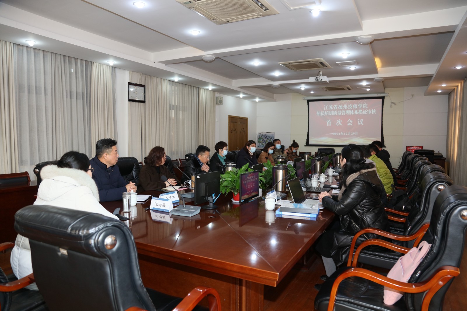 2021年12月27日至30日,国家海事局指派的专家审核组一行3人莅临扬州对我院船员培训质量管理体系进行换证审核。江苏省交通运输综合行政执法监督局科长沈健、学院院长耿春霞、副院长林峻及船培体系各受控部门负责人全程参加审核活动。经过为期四天的审核,我院船员培训质量管理体系换证审核顺利通过了专家组的审核。