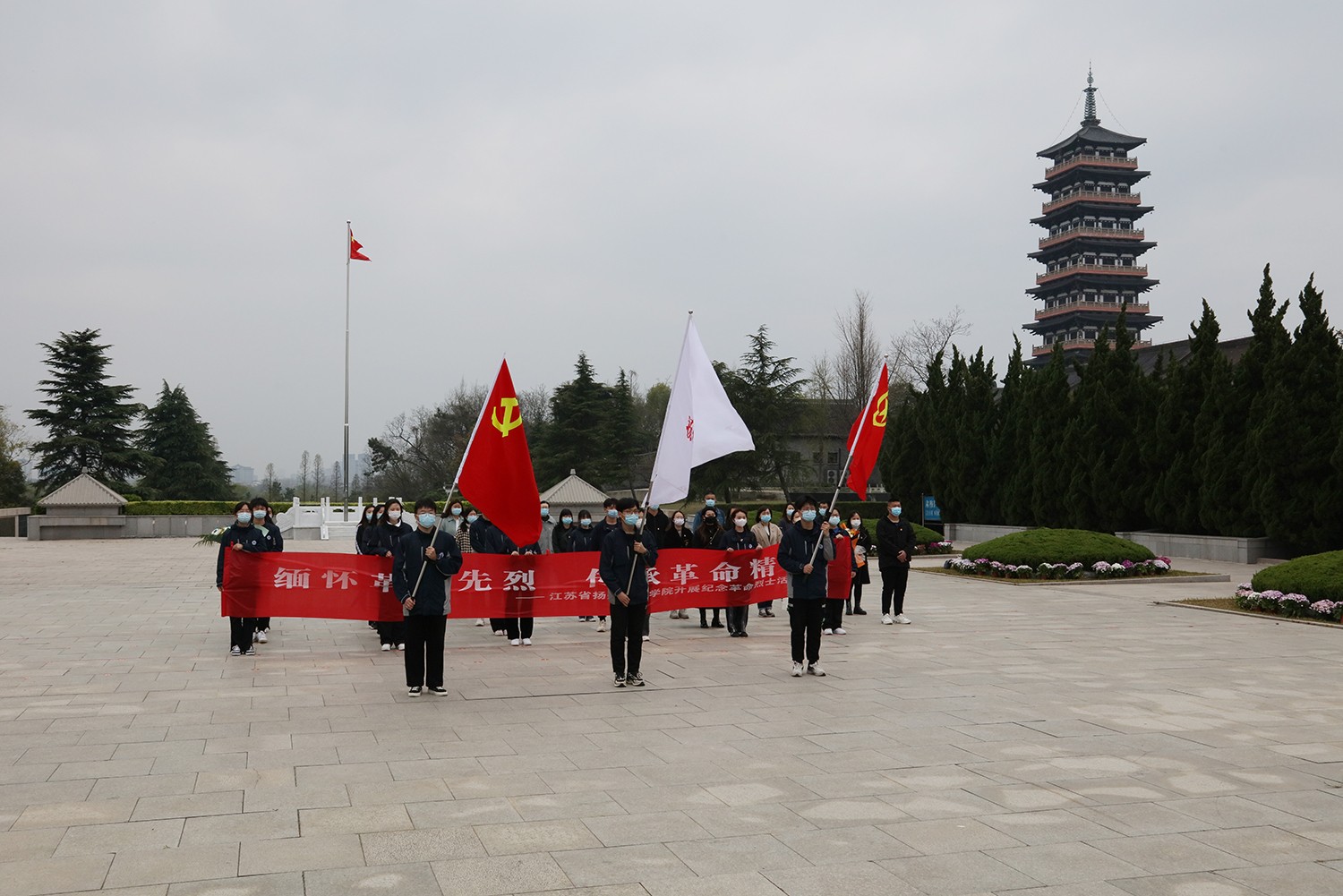 3月30日,我院组织党员教师、学生代表近35人前往扬州革命烈士陵园开展祭扫活动。在庄严的人民英雄纪念碑前,师生代表敬献鲜花,全体成员向革命先烈默哀致敬,以表达对先烈的缅怀之情。仪式结束后,大家怀着崇敬的心情瞻仰了烈士陵墓,了解了烈士们的丰功伟绩。