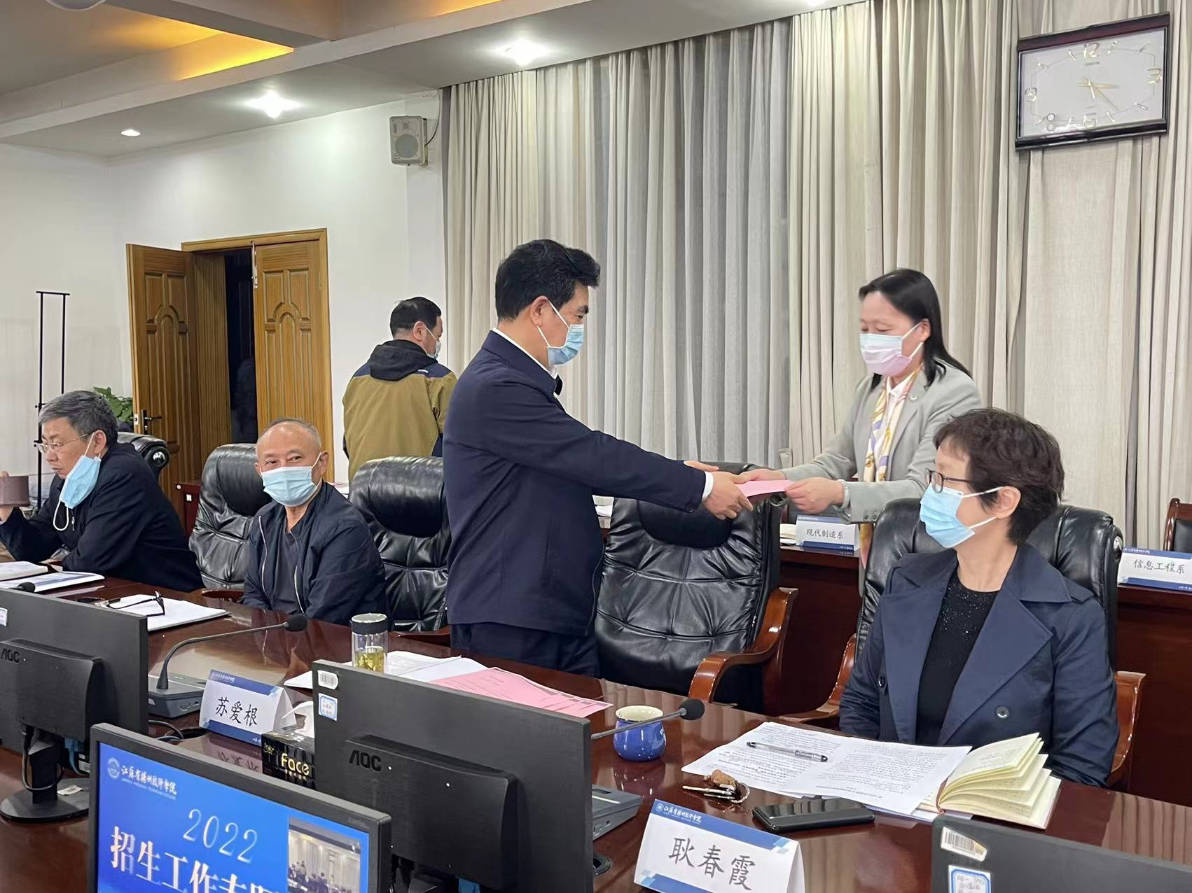 招就中心主任王新文同志就2022年的招生计划、招生政策、招生团队组建及招生目标任务考核等做了详细解读,在主会场参会的中层负责人向学院党委苏爱根书记递交了《2022年招生工作责任状》,现代制造系陈东林书记、管理工程系尹海明主任、基础素养中心臧莉书记、后勤保卫处高增光处长分别做了表态发言,坚决按照院党委和行政下达的招生计划,肩扛责任,积极开展工作圆满完成招生任务。