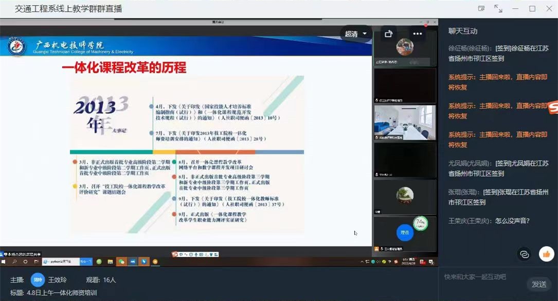 为落实人力资源社会保障部关于《推进技工院校工学一体化技能人才培养模式实施方案》的文件精神,对标落实技工教育“十四五”规划的“百千万”任务目标,全面推动学院一体化课程教学改革,有效加强学院一体化师资队伍建设。4月27日至29日,学院组织参加了第一期全国技工院校新专业(学科)带头人师资培训班,本次培训由广东三向智能科技股份有限公司主办,通过专用平台线上直播进行,学院各系部(中心)专业带头人、骨干教师代表全程参与了本次培训。