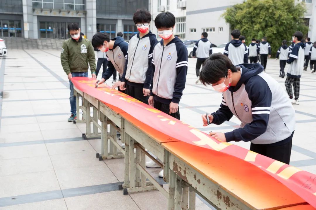 学习后,同学们情绪高昂,在精心楼门口一起重温了入团誓词,同学们眼神坚定,声音嘹亮,展现出了新时代青年的力量。随后在横幅上进行了签名。