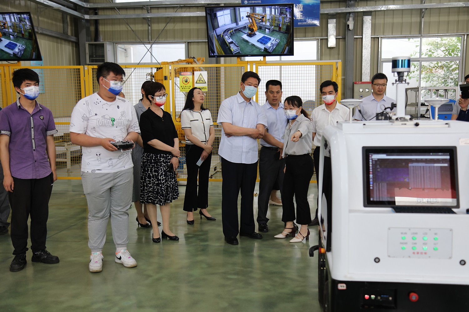 调研组一行先后参观了学院工业机器人公共实训中心、无人机比赛训练场地、3D打印实训场地等,实地查看学院实训现场和产改工作情况。