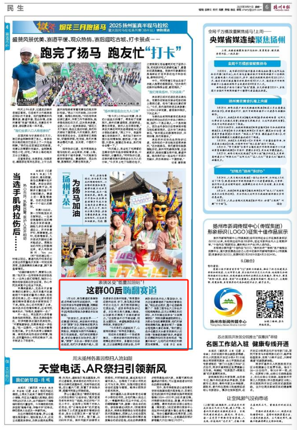 而在终点前最后一个助威表演点,一群来自扬州技师学院JS街舞社团的同学,身着活力运动装,正以动感舞姿点燃全场,为冲刺阶段的选手注入强劲动力,也为这场赛事增添了独特的青春注脚。“报名成功那天,整个社团都沸腾了!”信息工程专业大三学生乔侦妮难掩激动。这支以街舞见长的团队,本月初通过组委会“文体展演团队”网络招募通道脱颖而出。为契合马拉松赛事氛围,他们打破常规街舞风格,量身定制了一套融合啦啦操元素的表演。“我们要让选手在最后关头感受到扬州人的热情!”表演者吴镜妤表示,希望团队的舞蹈和灿烂笑容构筑成“能量补给站”,让他们在冲刺的时候更加有激情。